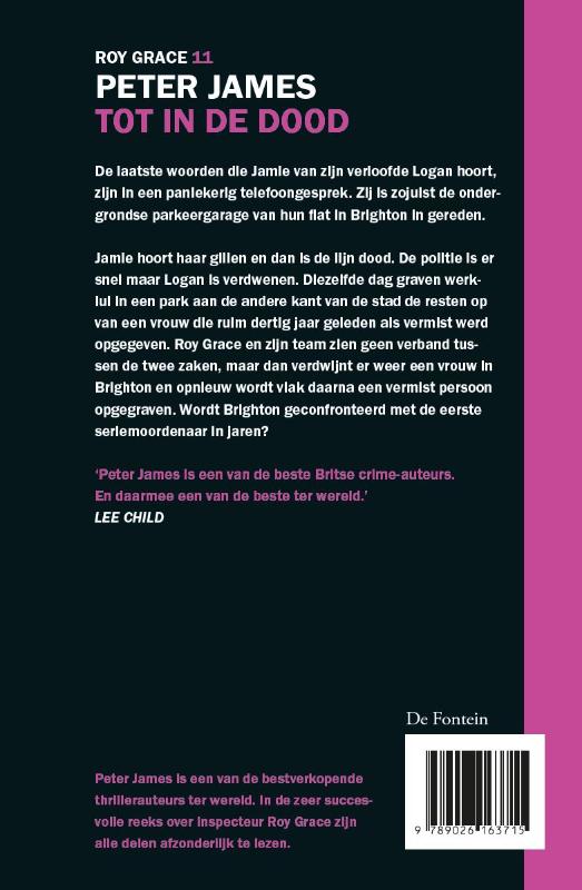 'Tot in de dood' is deel 11 in de Roy Grace-serie van Peter James waarvan alle delen afzonderlijk te lezen zijn. 'Wie eenmaal aan een Roy Grace-thriller begint, is voor zijn omgeving onbereikbaar.'
