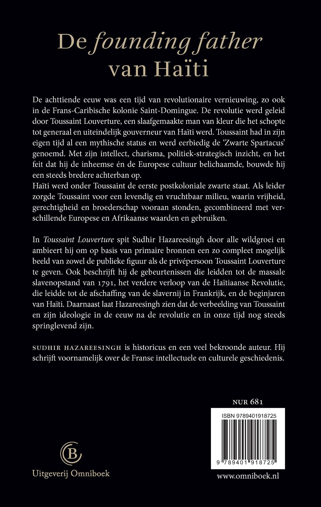 In ‘Toussaint Louverture’ beschrijft historicus Sudhir Hazareesingh het leven van Toussaint Louverture (1743-1803). Louverture werd geboren als slaaf, maar werd leider van de Haïtiaanse Revolutie (1791-1904). Hij ging de geschiedenis in als de ‘founding father’ van Haïti, de eerste postkoloniale zwarte staat ter wereld. Louverture wordt vaak geëerd als icoon van bevrijding, en tegelijkertijd bekritiseerd omdat hij zelf slaven hield. ‘Toussaint Louverture’ is een internationaal geprezen en meermaals onderscheiden biografie, waarin Sudhir Hazareesingh vertelt wie Toussaint Louverture écht was, welke idealen hem dreven en wat hij betekende voor het verloop van de revolutionaire achttiende eeuw.
