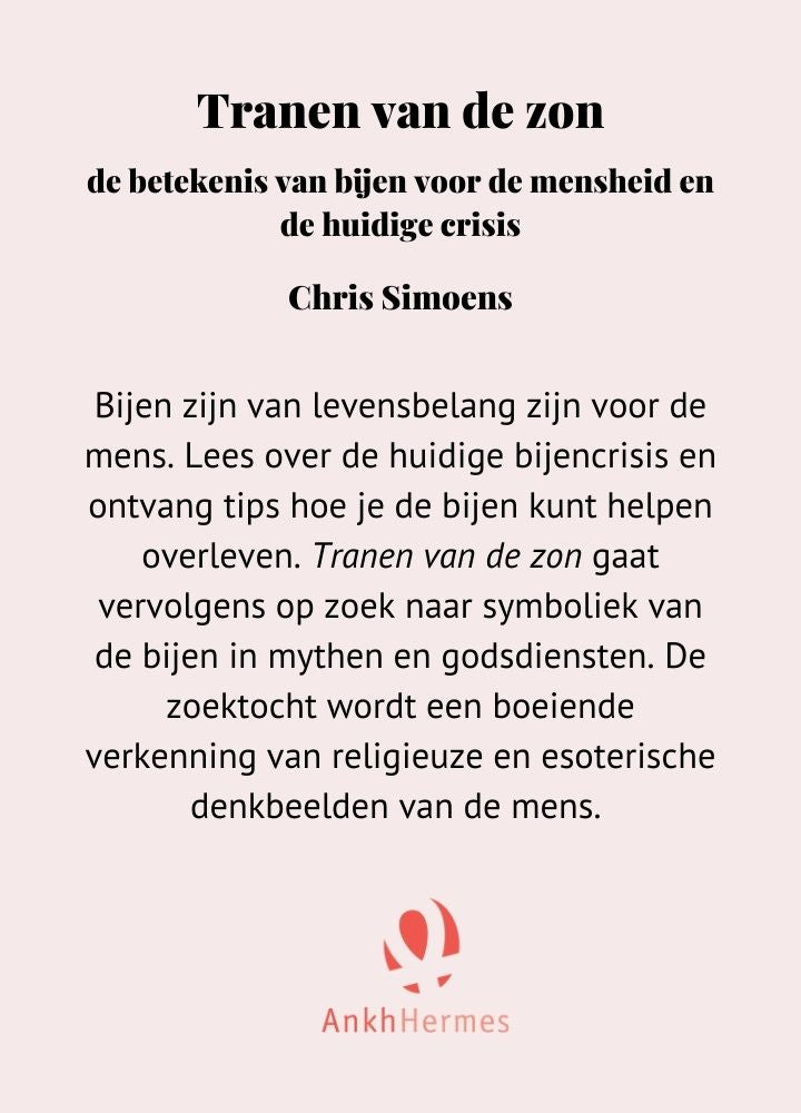 Bijen zijn onmisbaar voor het voortbestaan van de mensheid Tranen van de zon schetst op levendige wijze het leven van de bij. De auteur laat zien dat bijen van levensbelang zijn voor de mens, gaat in op de huidige bijencrisis en geeft tips hoe je de bijen kunt helpen overleven. Tranen van de zon gaat vervolgens op zoek naar symboliek van de bijen in mythen en godsdiensten. De zoektocht wordt een boeiende verkenning van religieuze en esoterische denkbeelden van de mens. Ook vandaag nog blijft het leven van de bijen, ontdaan van alle mythe, een mysterion. Want bijen verzamelen niets anders dan druppels gestold zonlicht tranen van de zon die ze verwerken tot de genezende honing. Bijen moéten hun onmisbare bevruchtingswerk op aarde kunnen blijven doen en zo de herinnering levend houden aan de Zon achter de zon.