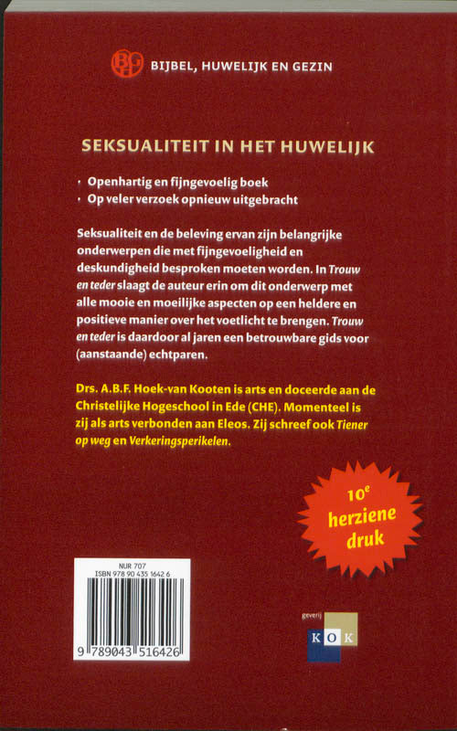 Seksualiteit en de beleving ervan zijn belangrijke onderwerpen die met fijngevoeligheid en deskundigheid besproken moeten worden. In Trouw en teder slaagt de auteur erin om dit onderwerp met alle mooie en moeilijke aspecten op een heldere en positieve manier over het voetlicht te brengen. Trouw en teder is daardoor al jaren een betrouwbare gids voor(aanstaande)echtparen.