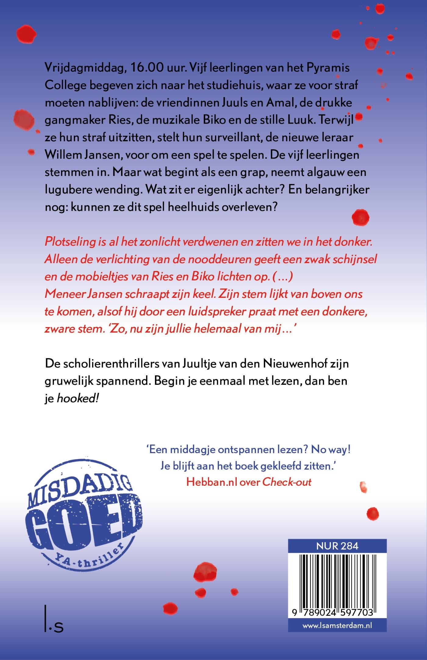 Juultje van den Nieuwenhof is docente Nederlands en drama. Ze schrijft spannende scholierenthrillers die zich afspelen in een eigentijdse setting en steevast eindigen met een huiveringwekkende ontknoping.