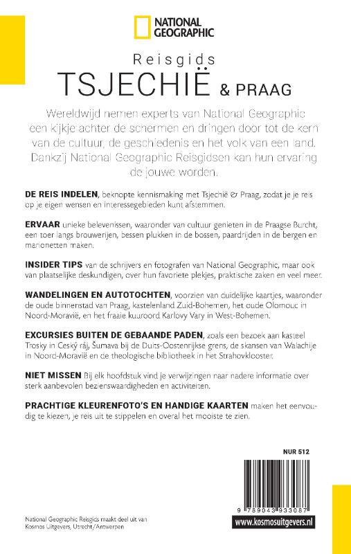 Bezoek met deze National Geographic Reisgids Tsjechië & Praag de Praagse burcht, maak een toer langs brouwerijen, pluk bessen in de bossen of doe een cursus marionetten maken. Breng een bezoek aan het kastelenland Zuid-Bohemen, het oude Olomouc in Noord-Moravië, en het fraaie kuuroord Karlovy Vary in West-Bohemen. Of maak een excursie naar kasteel Trosky in Ceský, Sumava bij de Duits-Oostenrijkse grens of de skansen van Wallachije in Noord-Moravië.