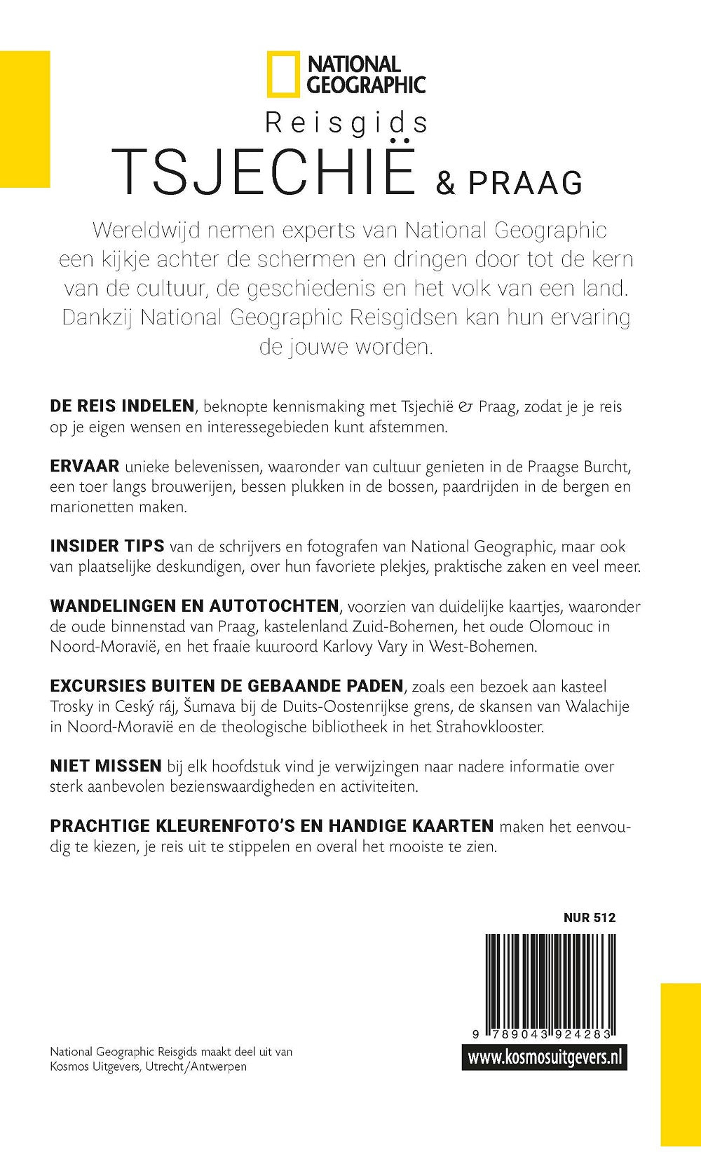 Bezoek met deze National Geographic Reisgids Tjechië & Praag de Praagse burcht, maak een toer langs brouwerijen, pluk bessen in de bossen of doe een cursus marionetten maken. Breng een bezoek aan het kastelenland Zuid-Bohemen, het oude Olomouc in Noord-Moravië, en het fraaie kuuroord Karlovy Vary in West-Bohemen. Of maak een excursie naar kasteel Trosky in Ceský, Sumava bij de Duits-Oostenrijkse grens of de skansen van Wallachije in Noord-Moravië.