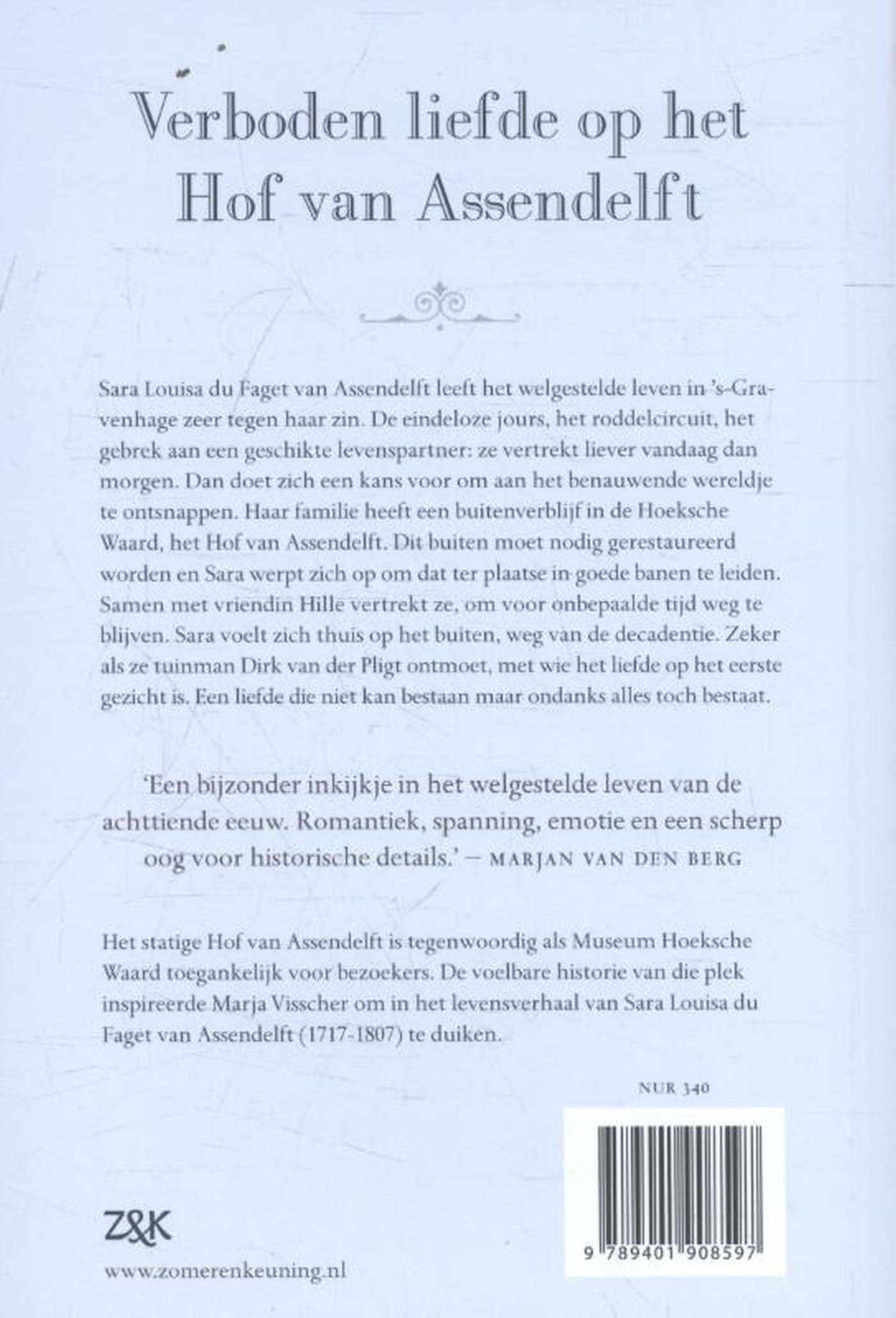 De historische roman Tussen rang en stand van Marja Visscher is gebaseerd op het leven van Sara Louisa du Faget van Assendelft. Zij verlaat het Lange Voorhout in ’s-Gravenhage om naar de Hoeksche Waard te gaan, waar haar familie een buitenverblijf heeft. Onder haar leiding wordt het verwaarloosde Hof van Assendelft gerestaureerd. Sara voelt zich er thuis, weg van de decadentie. Als ze de getrouwde tuinman Dirk van der Pligt ontmoet, is het liefde op het eerste gezicht. Een liefde die niet kan bestaan maar ondanks alles toch bestaat.