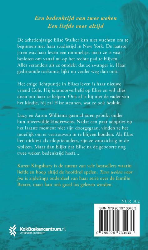 In ‘Twee weken voor jou’ van Karen Kingsbury staat Elise Walker voor een hartverscheurende keuze: ze heeft nog twee weken de tijd om te beslissen over het lot van haar pasgeboren baby.