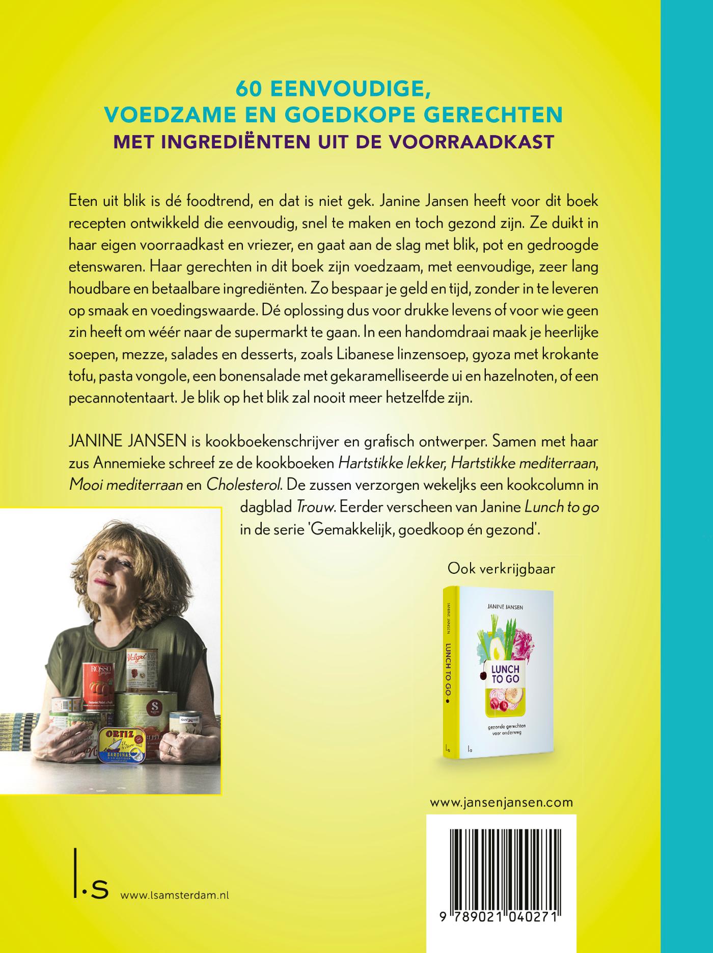 Met het kookboek Uit blik maak je de lekkerste gerechten uit de voorraadkast. Eten uit blik is dé foodtrend, en dat is niet gek. Ingeblikt eten is rijk aan voedingsstoffen – ideaal voor vegans –, bestaat uit gemakkelijke ingrediënten om mee te werken en heeft een zeer lange houdbaarheid. Bovendien bespaar je er tijd en geld mee. De oplossing dus voor drukke levens, of wie geen zin heeft in de supermarkt. Uit blik bevat 60 smakelijke recepten op basis van groenten, granen, peulvruchten en vis voor snelle doordeweekse maaltijden en etentjes om bij uit te pakken. Met tips voor de voorraadkast en verspillingsvrij koken. Zo wordt gezond, lekker en duurzaam ineens een stuk gemakkelijker!
