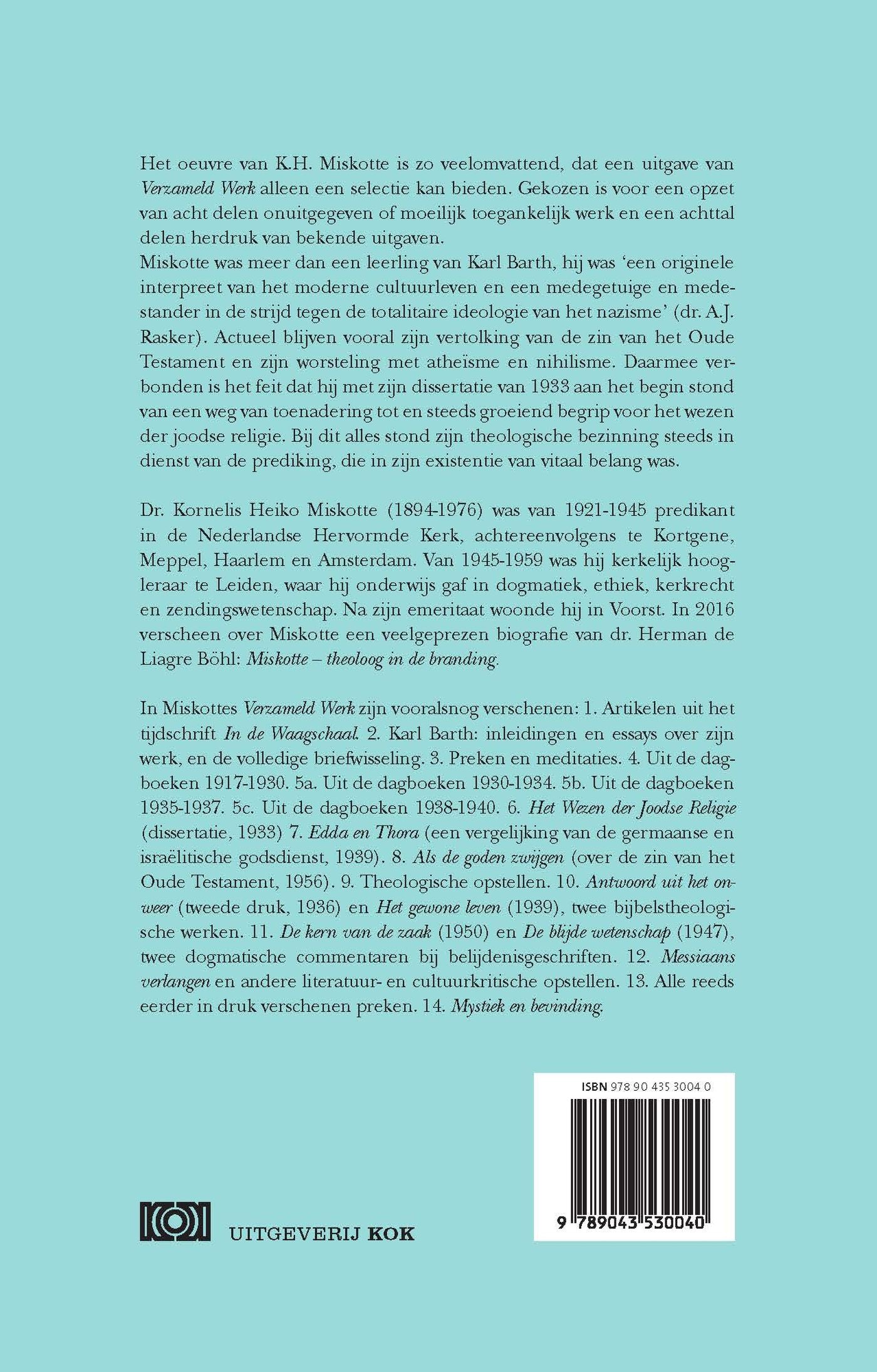 Een nieuw deel ‘Uit de dagboeken 1938-1940’ van de theoloog dr. K.H. Miskotte. Miskotte is hervormd predikant in Haarlem en vanaf september 1938 in Amsterdam. Daar werkt hij met bezieling in de verpauperde Jordaan. De wereldoorlog nadert en breekt uit in september 1939. Miskotte werkt onder grote druk aan zijn boek ‘Edda en Thora’, dat hij af wil hebben voordat de ‘Germanen’ komen. Geïnspireerd door theologie en poëzie houdt hij zich staande in een steeds dreigender wordende samenleving. K.H. Miskotte (1894-1976) is een van Nederlands meest invloedrijke theologen van de 20e eeuw. Deze publicatie met dagboekaantekeningen is het voorlaatste deel uit zijn Verzameld Werk.