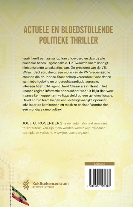 Israël heeft een aanval op Iran uitgevoerd en daarbij alle nucleaire bases uitgeschakeld. De Twaalfde Imam kondigt nietsontziende wraakacties aan. De president van de VS, William Jackson, dreigt een motie van de VN Vredesraad te steunen die de Joodse Staat scherpt veroordeelt. Intussen heeft CIA- agent David Shirazi als infiltrant in het Iraanse regime informatie onderschept waaruit blijkt dat twee Iraanse kernkoppen zijn veiliggesteld op een geheime locatie. Terwijl het gevaar op raketinslagen toeneemt en de machthebbers steeds vijandiger worden, moeten David en zijn team de kernkoppen zien te lokaliseren. Voordat zich een mondiale ramp zal voltrekken. De thrillers van Joel Rosenberg vormen een eenheid, maar zijn ook als afzonderlijke delen te lezen. De juiste volgorde van deze reeks is: 1. De Twaalfde Imam 2. Operatie Teheran 3. Uur der waarheid