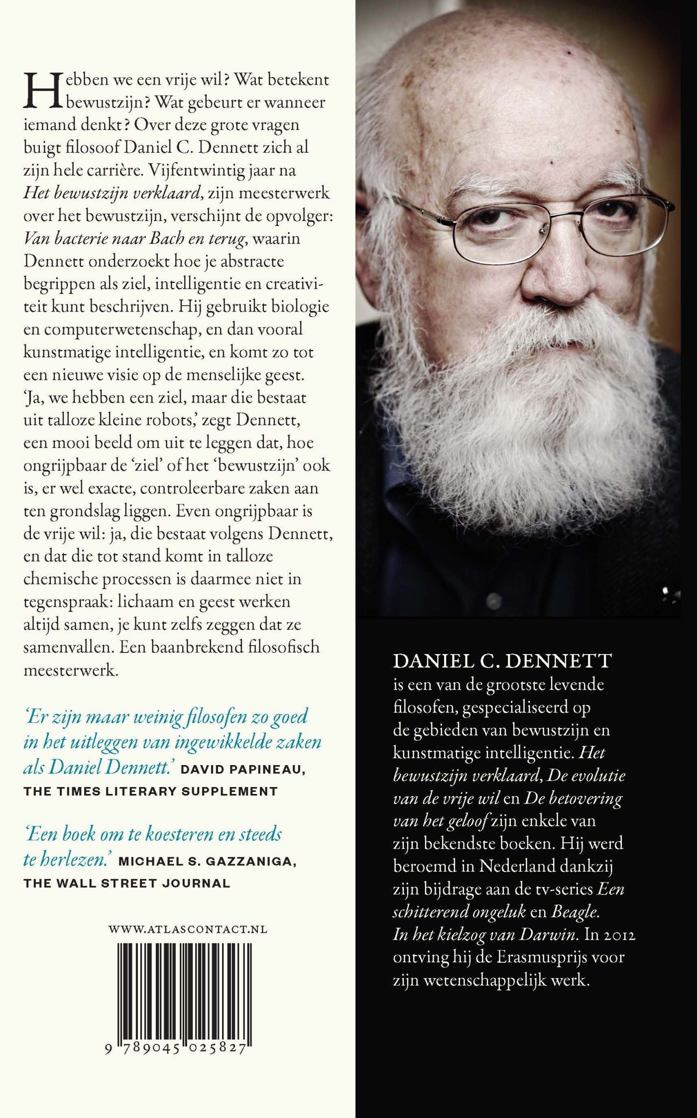 'Ja, we hebben een ziel, maar die bestaat uit talloze kleine robots,' zegt Dennett, een mooi beeld om uit te leggen dat, hoe ongrijpbaar de 'ziel' of het 'bewustzijn' ook is, er wel exacte, controleerbare zaken aan ten grondslag liggen. Even ongrijpbaar is de vrije wil: ja, die bestaat volgens Dennett, en dat die tot stand komt in talloze chemische processen is daarmee niet in tegenspraak: lichaam en geest werken altijd samen, je kunt zelfs zeggen dat ze samenvallen. Een baanbrekend filosofisch meesterwerk.