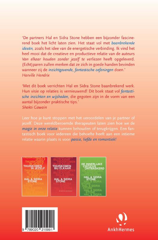Ik vind het heel mooi dat de creatieve en productieve relatie van de auteurs Van elkaar houden zonder jezelf te verliezen heeft opgeleverd. (Echt)paren zullen merken dat ze zich in goede handen bevinden wanneer zij de inzichtgevende, fantastische oefeningen doen. - Harville Hendrix