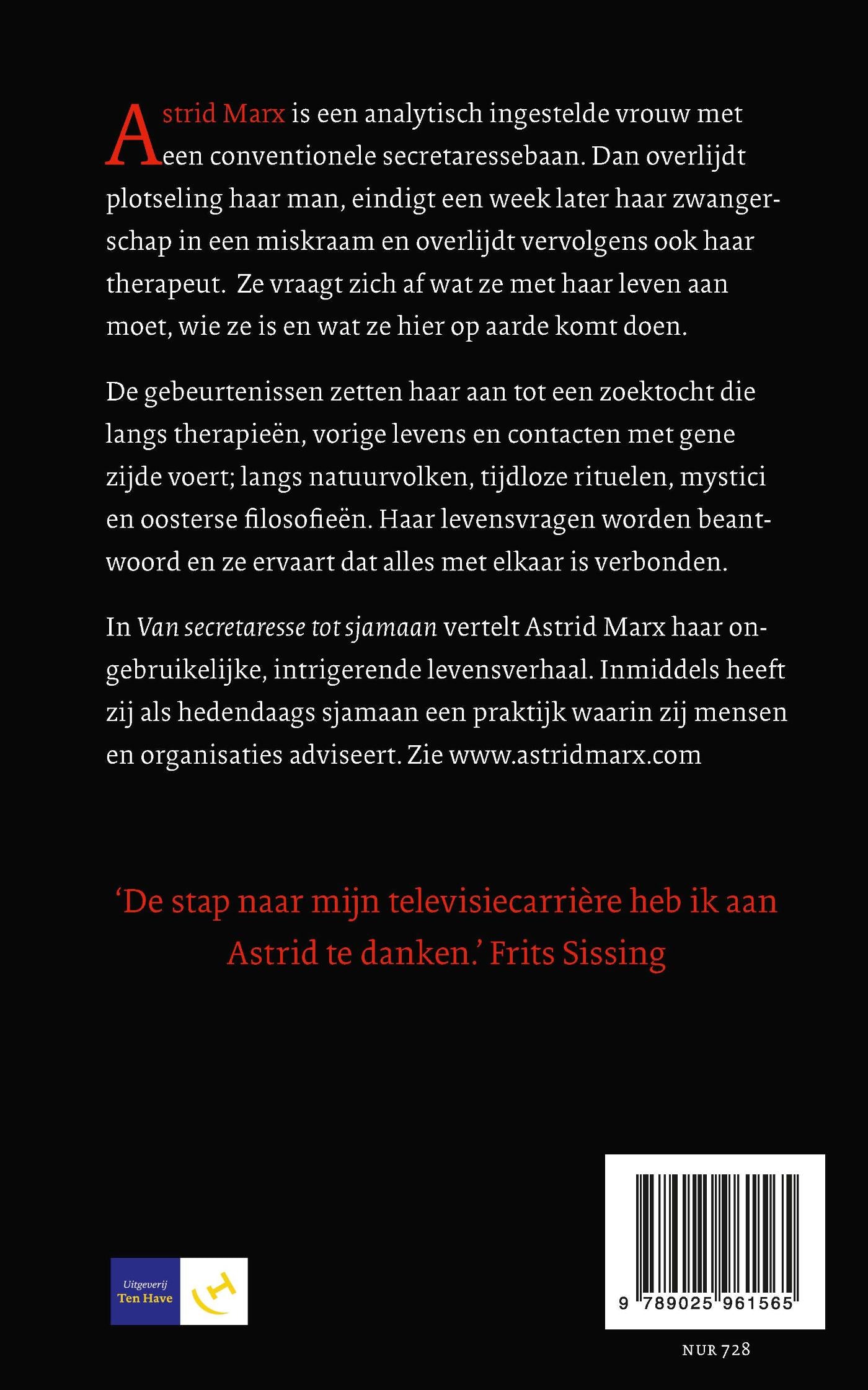Astrid Marx is een analytisch ingestelde vrouw met een conventionele secretaressebaan tot het moment dat haar man plotseling dood gaat. Als vervolgens ook haar rouwtherapeut sterft en haar zwangerschap eindigt in een miskraam, vraagt ze zich af wat ze met dit leven moet, wie ze is en wat ze hier op aarde komt doen. Haar rouwproces is de aanzet tot een zoektocht die langs therapieën, vorige levens en contacten met gene zijde voert; langs Aboriginals in Australië en Indianen in Amerika, langs tijdloze rituelen en oosterse filosofieën. Inmiddels heeft Astrid als hedendaags sjamaan een praktijk waarin zij met name zakenmensen adviseert.