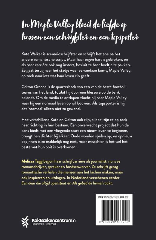Kate Walker geloofde altijd in de liefde, en zelfs nadat haar eigen hart gebroken werd bleef ze scenario’s schrijven voor romantische tv-series. Maar dan raakt haar carrière in het slop en geeft Kate het op. Ze besluit weer bij haar ouders te gaan wonen in het pittoreske Maple Valley om na te denken over haar volgende stap.