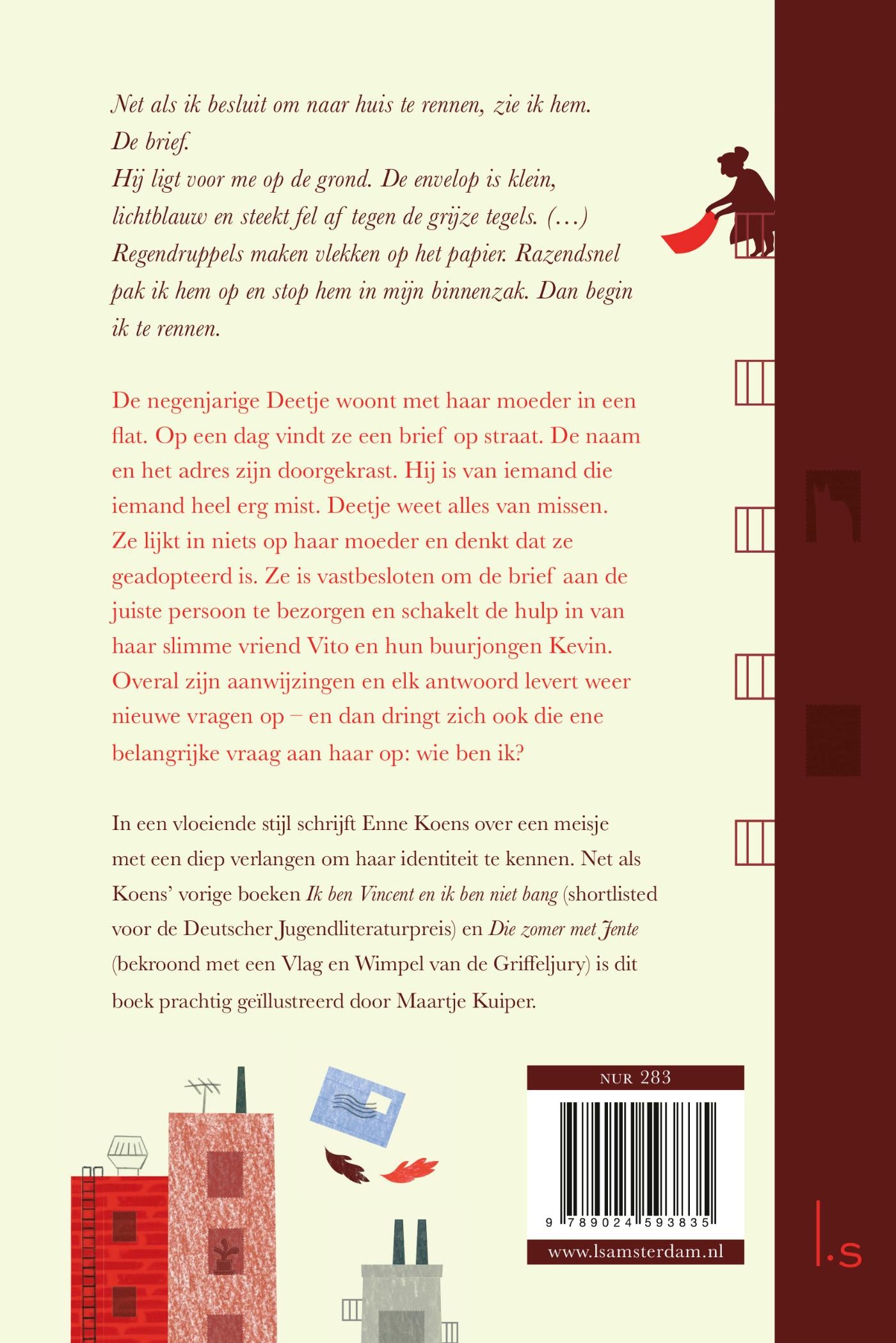 Op een dag vindt Dena – of Deetje, zoals iedereen haar noemt – een brief. Hij is van iemand die iemand heel erg mist. Deetje is vastbesloten de brief te bezorgen aan de juiste persoon. Dat blijkt minder makkelijk dan ze denkt en dus schakelt ze de hulp in van haar slimme vriend Vito en haar buurjongen Kevin. Zonder dat ze het doorheeft, zoekt ze naar die ene missende schakel in haar eigen leven. Overal zijn aanwijzingen, en elk antwoord levert meer vragen op. Uiteindelijk leidt alles naar het mysterie van haar eigen afkomst…