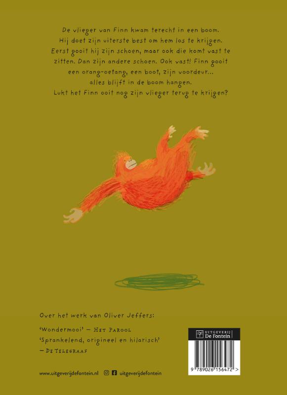De vlieger van Finn is in een boom terechtgekomen. Hij doet zijn uiterste best om de vlieger los te krijgen. Eerst gooit hij zijn schoen, maar die raakt ook vast. Dan zijn andere schoen. Ook vast. Finn gooit een orang-oetang, een boot, zijn voordeur… alles komt vast te zitten. Lukt het Finn ooit nog zijn vlieger terug te krijgen?