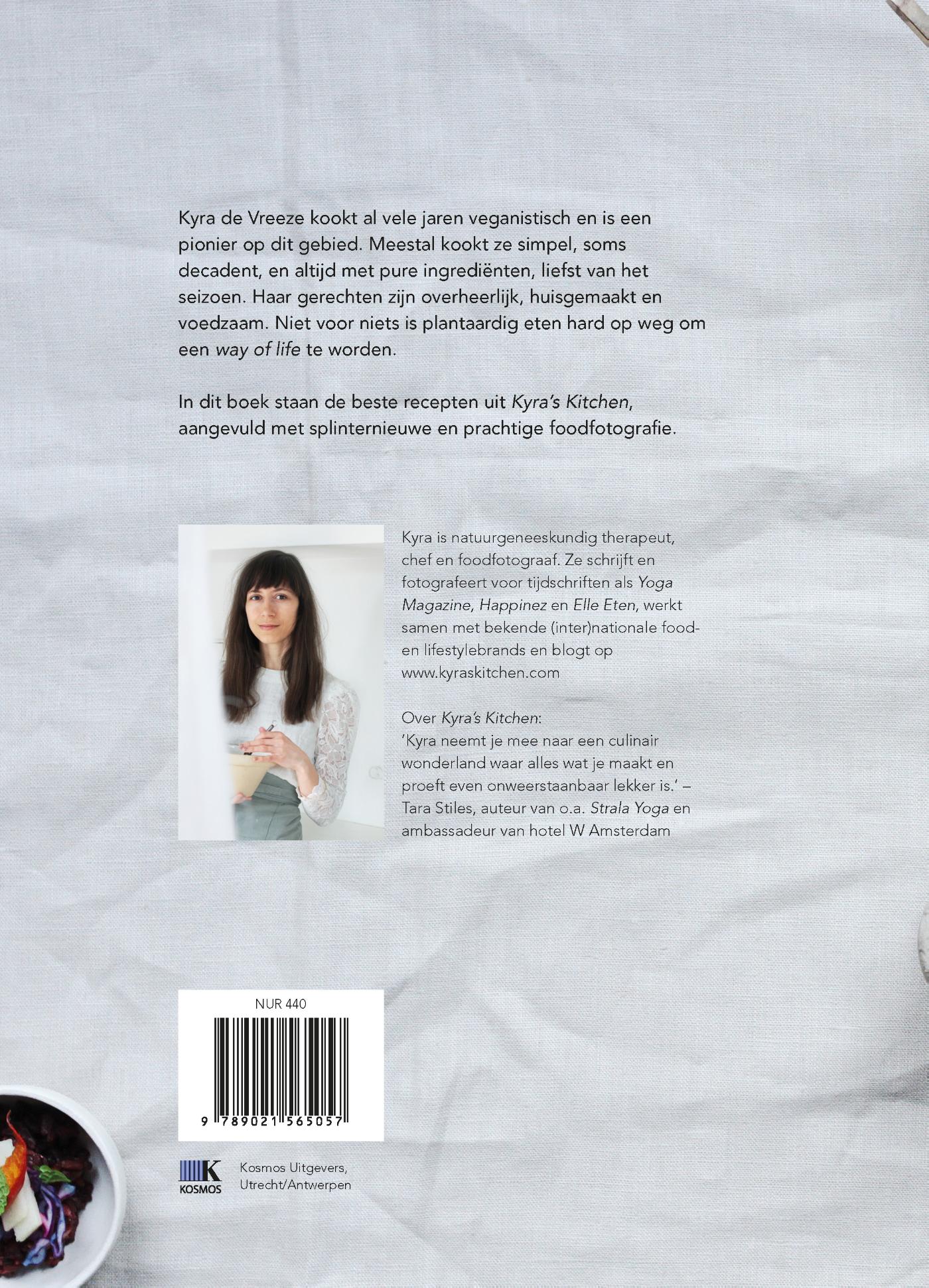 Overheerlijk huisgemaakt en voedzaam eten. Meestal simpel, soms decadent, en altijd met pure ingrediënten, liefst van het seizoen. Uit haar keuken komen de maaltijden die in Yoga Magazine, Happinez en Elle Eten staan. Nu verschijnt Kyra’s eigen kookboek. Het bevat de meest favoriete recepten uit Kyra’s Kitchen, aangevuld met nieuwe recepten en prachtige foodfotografie.