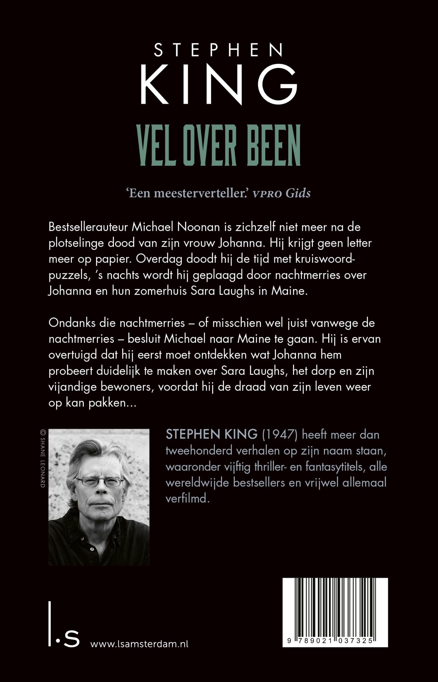 In Vel over been van Stephen King is bestsellerauteur Michael Noonan zichzelf niet meer na de plotselinge dood van zijn vrouw Johanna. Hij krijgt geen letter meer op papier. Overdag doodt hij de tijd met kruiswoordpuzzels, 's nachts wordt hij geplaagd door nachtmerries over Johanna en hun zomerhuis Sarah Laughs in Maine.