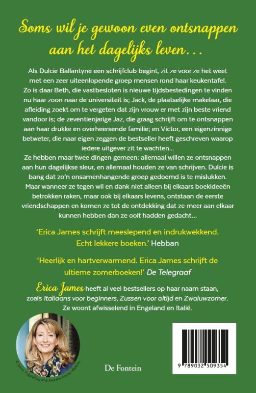 Ze hebben maar twee dingen gemeen: allemaal willen ze ontsnappen aan hun dagelijkse sleur, en allemaal houden ze van schrijven. Dulcie is bang dat zo’n onsamenhangende groep gedoemd is te mislukken. Maar wanneer ze tegen wil en dank niet alleen bij elkaars boekideeën betrokken raken, maar ook bij elkaars levens, ontstaan de eerste vriendschappen en komen ze tot de ontdekking dat ze meer aan elkaar kunnen hebben dan ze ooit hadden gedacht…
