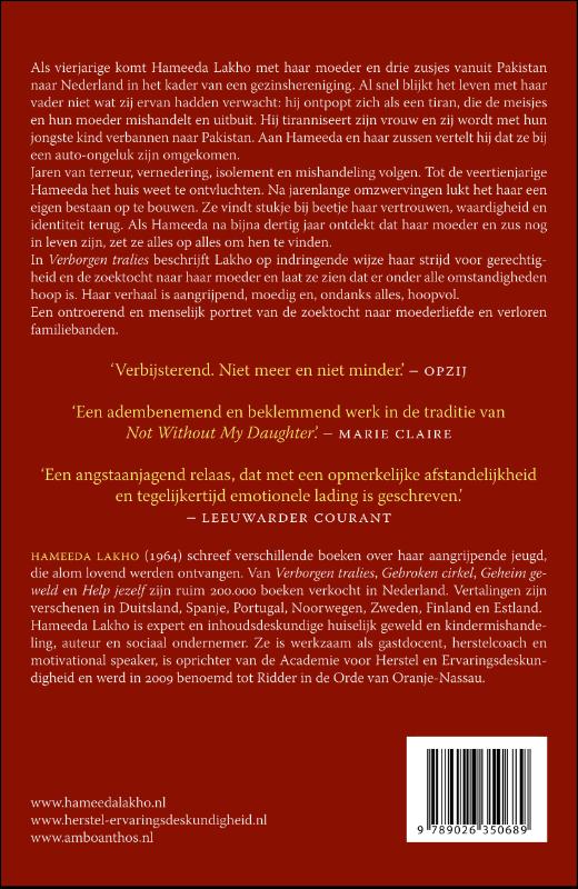 In Verborgen tralies beschrijft Lakho haar zoektocht naar zichzelf en laat ze zien dat er onder alle omstandigheden houvast is. Het resulteert in een aangrijpend, persoonlijk, moedig en, ondanks alles, hoopvol verhaal.
