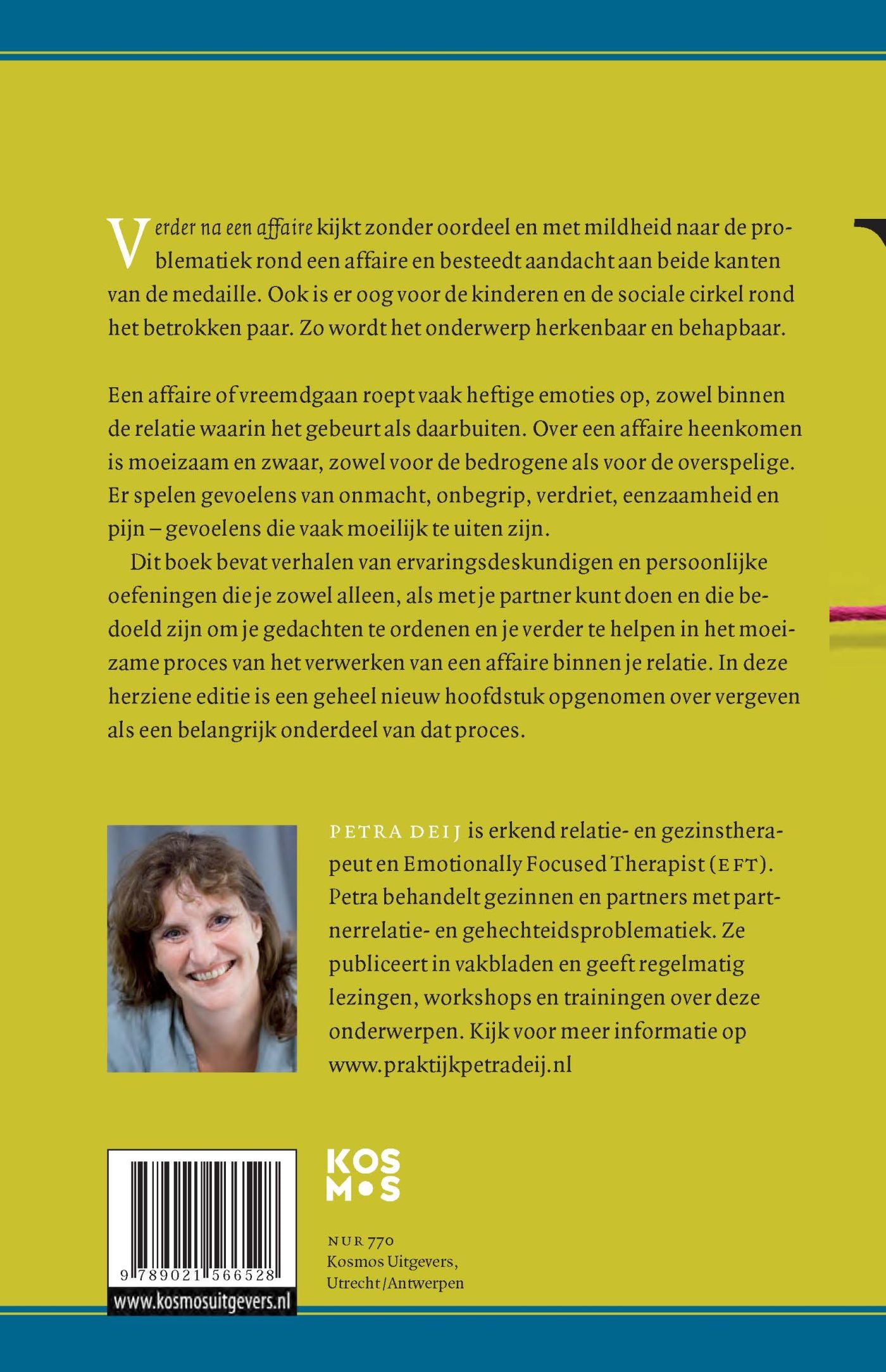 Hoe kom je over ontrouw heen? In deze aangevulde, herziene editie beschrijft Petra Deij dat zo’n stormachtige en pijnlijke periode niet in een scheiding hoeft te eindigen en hoe je eroverheen kunt komen. Met verhalen van ervaringsdeskundigen, zorgvuldige adviezen en oefeningen op basis van de EFT-methode (emotionally focused therapy van Sue Johnson) laat ze zien hoe je samen verder kunt gaan. Een onbevooroordeelde raadgever die troost biedt en houvast geeft voor een nieuwe start.