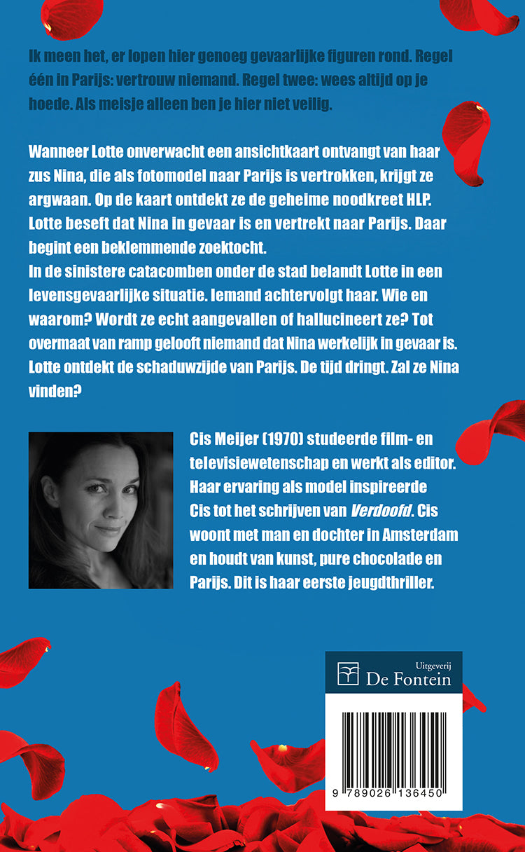 Verdoofd van Cis Meijer is een zinderend spannende young adult-thriller die sterk doet denken aan Het parfum. Lotte begint in Parijs aan een beklemmende zoektocht naar haar verdwenen zus Nina. In de sinistere catacomben onder de stad belandt Lotte in een levensgevaarlijke situatie. Iemand achtervolgt haar. Wie en waarom? Wordt ze echt aangevallen of hallucineert ze? Tot overmaat van ramp gelooft niemand dat Nina werkelijk in gevaar is. Lotte ontdekt de schaduwzijde van de Parijse kunstwereld. De tijd dringt Zal ze Nina vinden? Voor de fans van Mel Wallis de Vries. Cis Meijer (1970) groeide op in Delft, studeerde film- en televisiewetenschap aan de Universiteit van Amsterdam en werkt als editor. Haar ervaring als model inspireerde Cis tot het schrijven van Verdoofd.