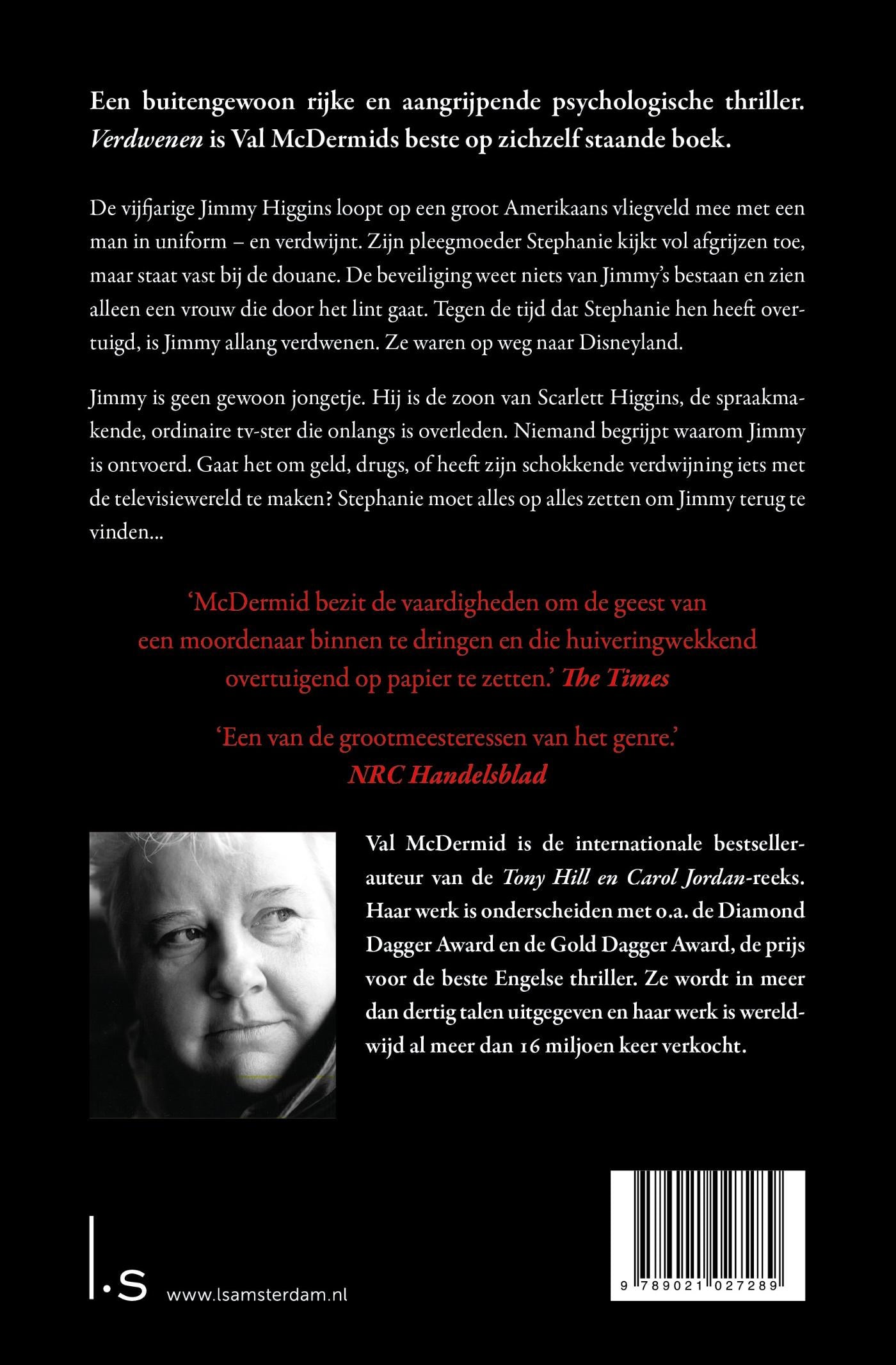 In Verdwenen van bestsellerauteur Val McDermid loopt de vijfjarige Jimmy Higgins op een groot Amerikaans vliegveld mee met een man in uniform – en verdwijnt. Zijn pleegmoeder Stephanie Harker staat machteloos in de douanesluis. Ze waren op weg naar Disneyland.