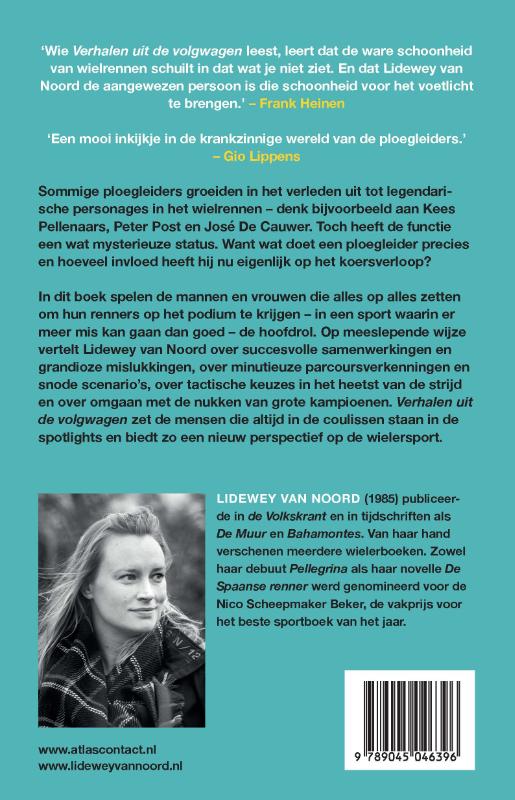 In dit boek spelen de mannen en vrouwen die alles op alles zetten om hun renners op het podium te krijgen – in een sport waarin er meer mis kan gaan dan goed – de hoofdrol. Op meeslepende wijze vertelt Lidewey van Noord over succesvolle samenwerkingen en grandioze mislukkingen, over minutieuze parcoursverkenningen en snode scenario’s, over tactische keuzes in het heetst van de strijd en over omgaan met de nukken van grote kampioenen. Verhalen uit de volgwagen zet de mensen die altijd in de coulissen staan in de spotlights en biedt zo een nieuw perspectief op de wielersport.