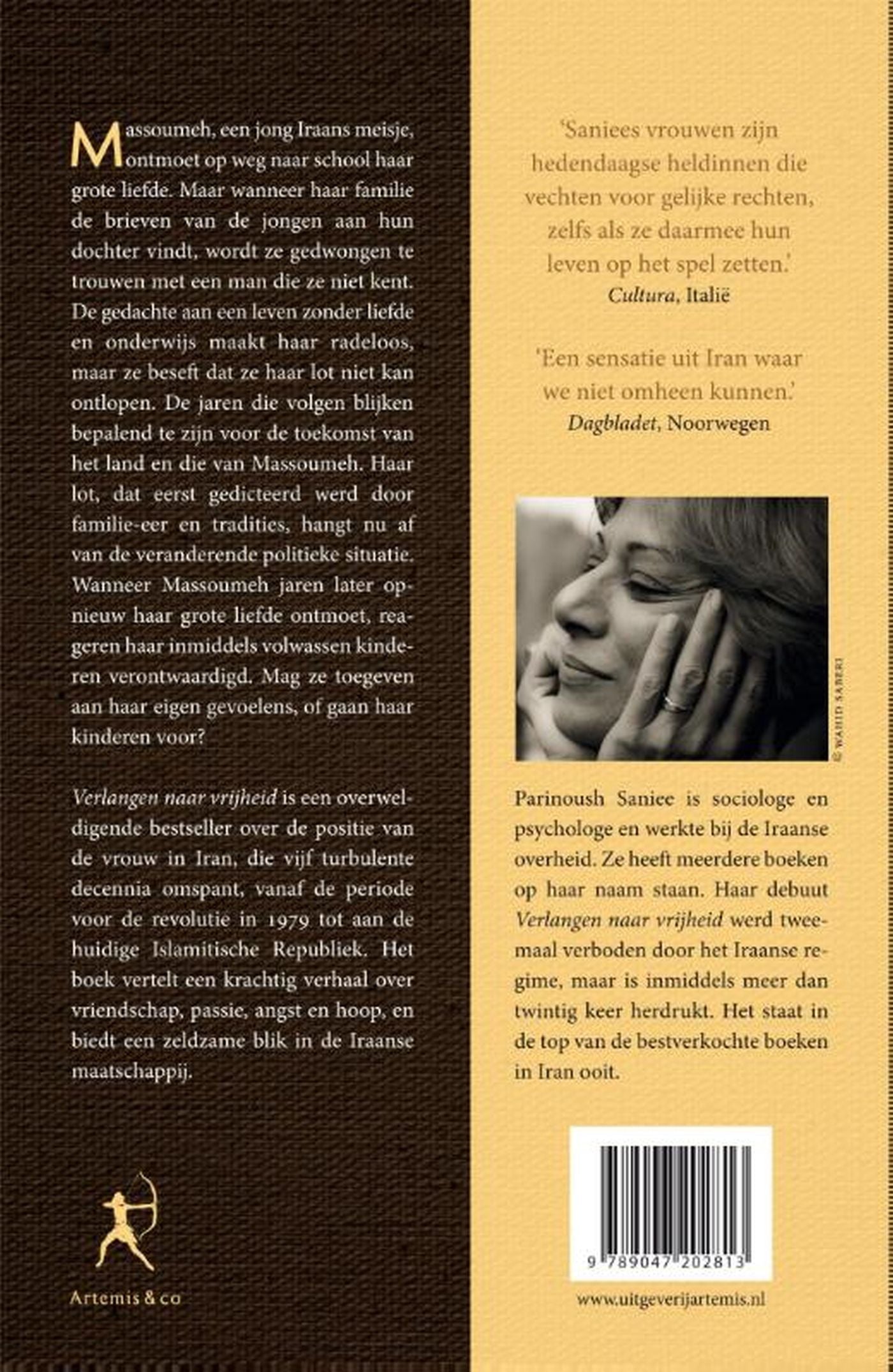 Massoumeh, een jong Iraans meisje, ontmoet op weg naar school haar grote liefde. Maar wanneer haar familie de brieven van de jongen aan hun dochter ontdekt, wordt ze gedwongen te trouwen met een man die ze niet kent. De gedachte aan een leven zonder liefde en onderwijs maakt haar radeloos, maar ze beseft dat ze haar lot niet kan ontlopen. De jaren die volgen blijken bepalend voor de toekomst van het land te zijn en Massoumehs man Hamid vormt een bedreiging voor het regime van de sjah. Wanneer de geheime dienst hem arresteert, breekt een angstige periode aan voor Massoumeh en haar kinderen. Haar lot, dat zo lang gedicteerd werd door familie-eer en tradities, hangt nu af van de veranderende politieke situatie. Wanneer ze jaren later opnieuw haar grote liefde ontmoet, reageren haar inmiddels volwassen kinderen verontwaardigd. Mag ze toegeven aan haar eigen gevoelens, of gaan haar kinderen voor? Verlangen naar vrijheid is een overweldigende bestseller over de positie van de vrouw in Iran die vijf turbulente decennia omspant, vanaf de periode voor de revolutie in 1979 tot aan de huidige Islamitische Republiek. Een krachtig verhaal over vriendschap, passie, angst en hoop dat een zeer zeldzame blik biedt in de Iraanse maatschappij.