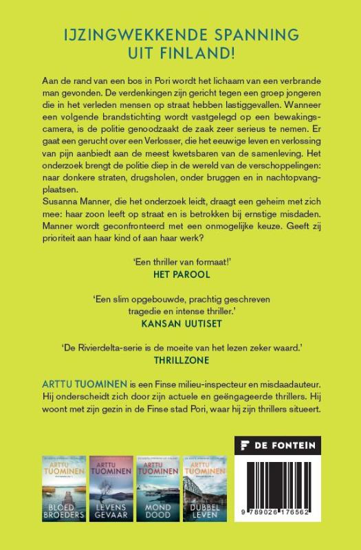 Deel 5 in de serie Rivierdelta. Het lichaam van een verbrande man wordt gevonden op de atletiekbaan in Pori. Het slachtoffer werd overgoten met benzine en in brand gestoken. De verdenkingen zijn gericht tegen een groep jongeren waarvan bekend is dat zij in het verleden mensen die op straat leven hebben lastiggevallen. Het vermoeden bestaat dat het pesten enorm uit de hand is gelopen. Wanneer een volgende brandstichting wordt vastgelegd op een bewakingscamera, is de politie genoodzaakt de zaak zeer serieus te nemen. Er gaat een gerucht op straat over een Verlosser die eeuwig leven en verlossing van pijn aanbiedt aan de meest kwetsbaren van de samenleving.