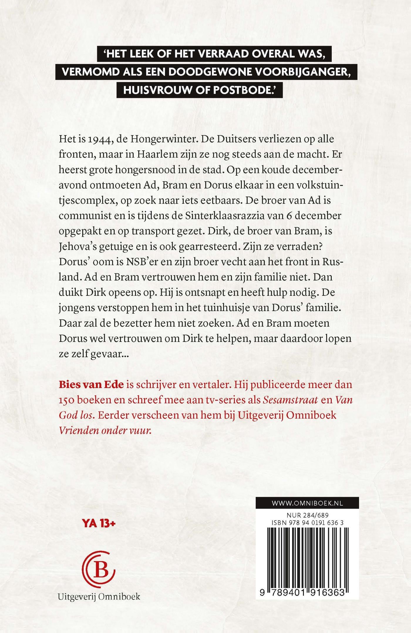 Het is 1944, de Hongerwinter. Drie jongens treffen elkaar in een volkstuintjescomplex op zoek naar iets eetbaars. De broer van Ad is communist en is opgepakt tijdens de Sinterklaasrazzia op 6 december. Bram komt uit een Jehova-gezin. Zijn broer Dirk is ook op transport gezet. Het lijkt of de Duitsers wisten waar ze de jongens konden vinden. Zijn ze verraden? Dorus’ oom is NSB’er en zijn broer vecht aan het Oostfront. De andere twee jongens vertrouwen hem niet. Dan duikt Dirk ineens op. De jongens moeten Dorus wel vertrouwen om Dirk te kunnen helpen. Maar daardoor lopen ze zelf gevaar...