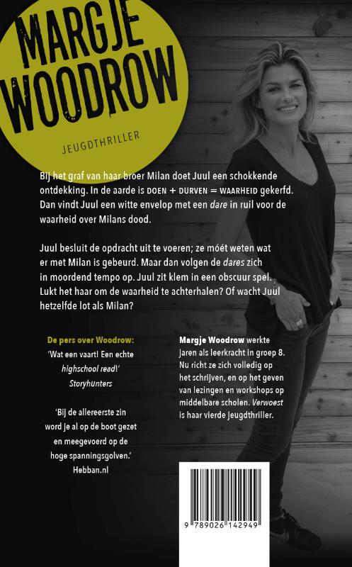 Verwoest is een huiveringwekkende jeugdthriller van Margje Woodrow, voor de fans van Mel Wallis de Vries en Cis Meijer. Nu met politie niet betreden-elastiek.