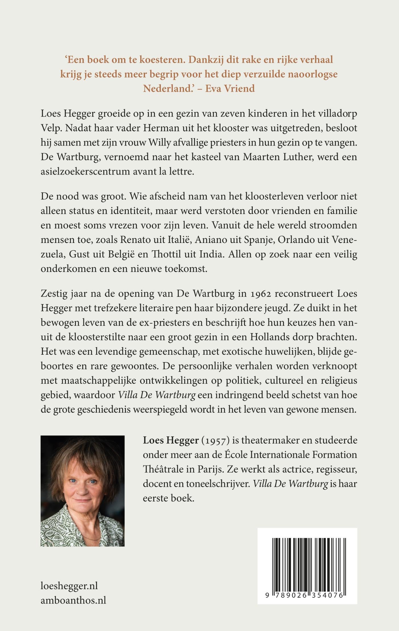 Zestig jaar na de opening van De Wartburg in 1962 reconstrueert Loes Hegger met trefzekere literaire pen haar bijzondere jeugd. Ze duikt in de bewogen levens van de ex-priesters en beschrijft hoe hun keuzes hen vanuit de kloosterstilte naar een groot gezin in een Hollands dorp brachten.Het was een levendige gemeenschap, met exotische huwelijken, blijde geboortes en rare gewoontes. De persoonlijke verhalen worden verknoopt met ontwikkelingen op politiek, cultureel en religieus gebied, waardoor Villa de Wartburg een indringend beeld schatst van houe de grote geschiedenis weerspiegeld wordt in het leven van gewone mensen. De vader van de auteur, Herman Hegger, was een van de meest vooraanstaande theologen van de twintigste eeuw.