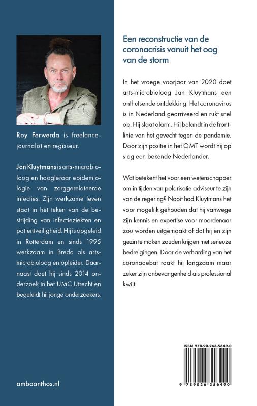 Wat betekent het voor een wetenschapper om in tijden van polarisatie adviseur te zijn van de regering? Nooit had Kluytmans het voor mogelijk gehouden dat hij vanwege zijn kennis en expertise voor ‘moordenaar’ zou worden uitgemaakt of dat hij en zijn gezin te maken zouden krijgen met serieuze bedreigingen. Door de verharding van het coronadebat raakt hij langzaam maar zeker zijn onbevangenheid als professional kwijt.