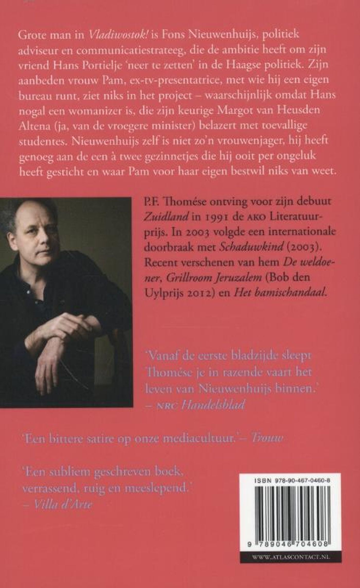 Grote man in Vladiwostok! is Fons Nieuwenhuijs, politiek adviseur en communicatiestrateeg, die de ambitie heeft om zijn vriend Hans Portielje ‘neer te zetten’ in de Haagse politiek. Zijn aanbeden vrouw Pam, ex-tv-presentatrice, met wie hij een eigen bureau runt, ziet niks in het project – waarschijnlijk omdat Hans nogal een womanizer is, die zijn keurige Margot van Heusden Altena (ja, van de vroegere minister) belazert met toevallige studentes. Nieuwenhuijs zelf is niet zo’n vrouwenjager, hij heeft genoeg aan de een à twee gezinnetjes die hij ooit per ongeluk heeft gesticht en waar Pam voor haar eigen bestwil niks van weet.