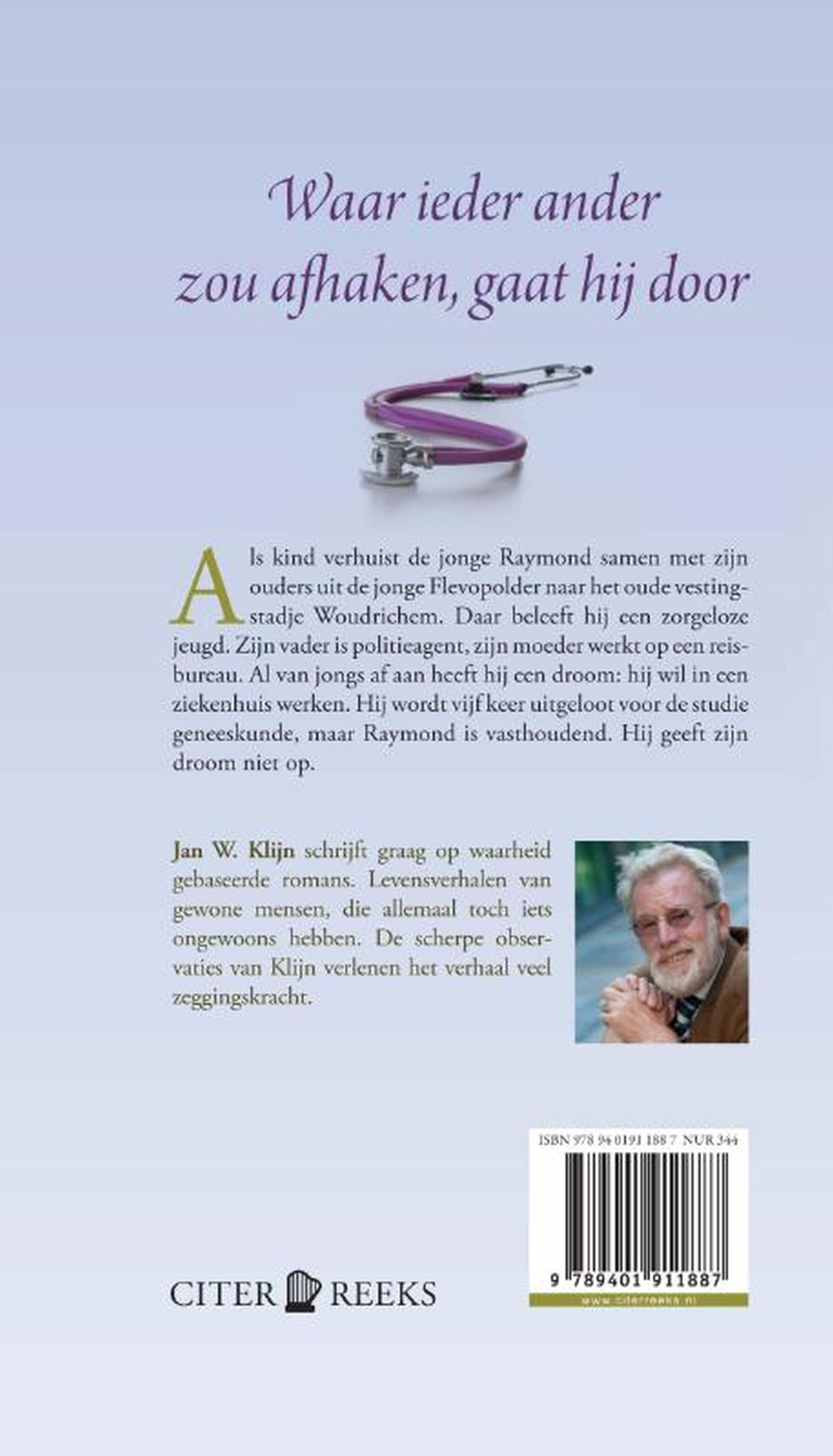 Als kind verhuist de jonge Raymond, hoofdpersoon in ‘Volhouder’ van Jan W. Klijn, met zijn ouders uit de Flevopolder naar het oude vestingstadje Woudrichem. Daar beleeft hij een zorgeloze jeugd. Zijn vader is politieagent, zijn moeder werkt op een reisbureau. Al van jongs af aan heeft hij een droom: hij wil in een ziekenhuis werken. Hij wordt vijf keer uitgeloot voor de studie geneeskunde, maar Raymond is vasthoudend. Hij geeft zijn droom niet op. Jan W. Klijn schreef het levensverhaal van deze volhouder op met een vlotte pen en met scherpe observaties, die het boek veel zeggingskracht verlenen.