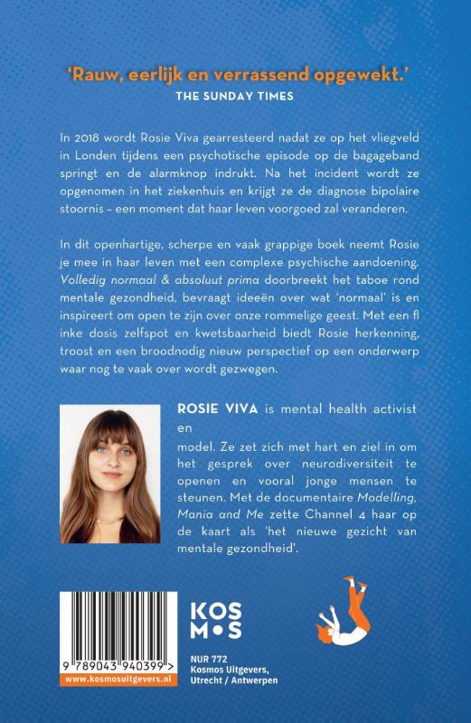 In ‘Volledig normaal & absoluut prima’vertelt Rosie op een grappige en luchtige manier over haar leven met een complexe psychische aandoening die vaak verkeerd wordt begrepen. Ze vertelt hoe ze met haar psychose, depressie en herstel omgaat, maar ook met liefde, haar werk en haar identiteit terwijl ze een nieuw normaal moet accepteren. Ze doorbreekt het taboe rond mentale gezondheid, bevraagt onze ideeën over wat ‘normaal’ is en inspireert om open te zijn over onze rommelige geest.