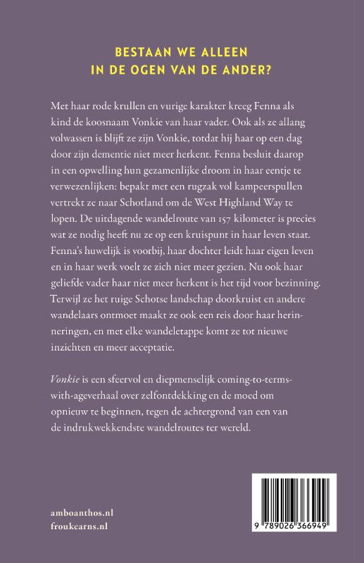 Met haar rode krullen en vurige karakter kreeg Fenna als kind de koosnaam Vonkie van haar vader. Ook als ze allang volwassen is blijft ze zijn Vonkie, totdat hij haar op een dag door zijn dementie niet meer herkent. Fenna besluit daarop in een opwelling hun gezamenlijke droom in haar eentje te verwezenlijken: bepakt met een rugzak vol kampeerspullen vertrekt ze naar Schotland om de West Highland Way te lopen. De uitdagende wandelroute van 157 kilometer is precies wat ze nodig heeft nu ze op een kruispunt in haar leven staat.