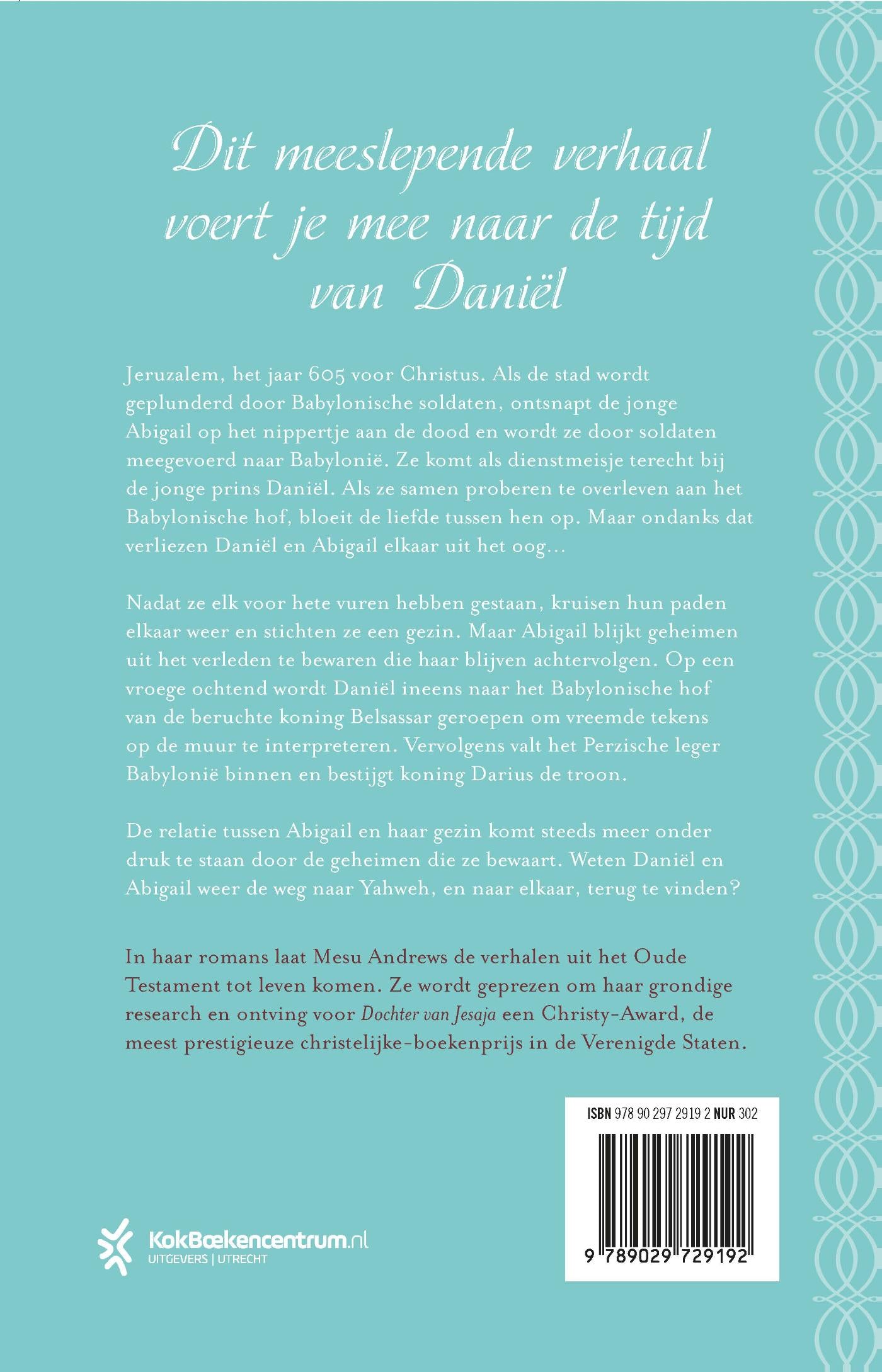 'Voor de leeuwen' van Mesu Andrews is een spannende Bijbels-historische roman. Nadat de jonge Abigail is gekidnapt door Babylonische soldaten, komt ze als dienstmeisje terecht bij prins Daniël. Ze spannen samen om te kunnen overleven aan het hof van de beruchte koning Nebukadnezar. Dit gaat goed… totdat Daniël op een nacht naar het paleis van Belsazar wordt gebracht om mysterieuze tekens op de muur te interpreteren. Een invasie van het Perzische leger volgt en Abigail, die een groot geheim bewaart, moet alles op alles zetten om te voorkomen dat dit ontdekt wordt. Hoe reageert de nieuwe koning Darius op Daniël, een man die alleen bidt tot Yahweh?