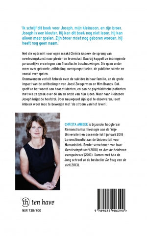 Met die opdracht voor ogen maakt Christa Anbeek de sprong van overlevingskunst naar plezier en levenslust. Daarbij koppelt ze indringende persoonlijke ervaringen aan filosofische beschouwingen. Die gaan onder meer over geboorte, zelfdoding, overgangsrituelen, de publieke ruimte en vooral over spelen.