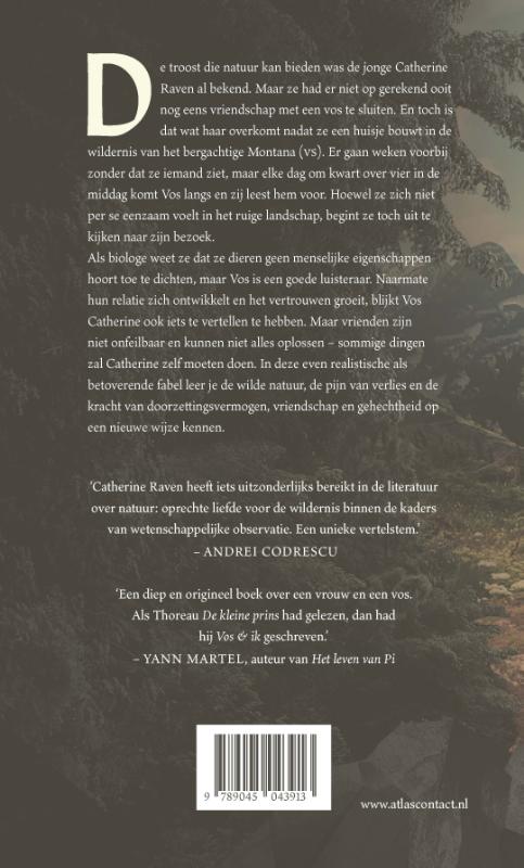 Als biologe weet Raven dat ze dieren geen menselijke eigenschappen hoort toe te dichten, maar Vos is een goede luisteraar. Naarmate hun relatie zich ontwikkelt en het vertrouwen groeit, blijkt Vos Catherine ook iets te vertellen te hebben. Maar vrienden zijn niet onfeilbaar en kunnen niet alles oplossen – sommige dingen zal Catherine zelf moeten doen.