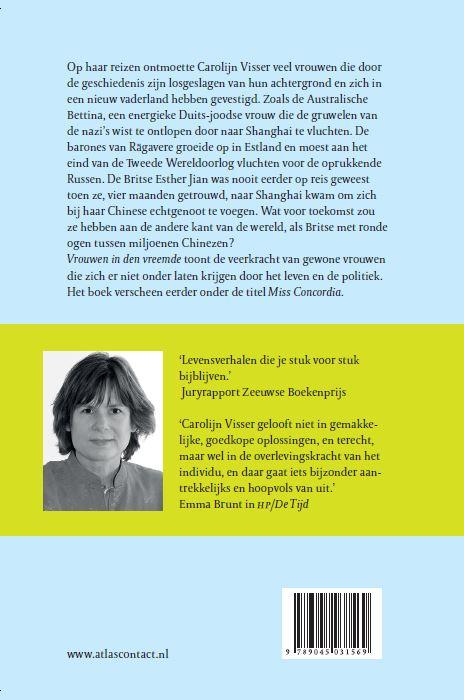 Op haar reizen ontmoette Carolijn Visser veel vrouwen die door de geschiedenis zijn losgeslagen van hun achtergrond en zich in een nieuw vaderland hebben gevestigd. Zoals de Australische Bettina, een energieke Duits-joodse vrouw die de gruwelen van de nazi’s wist te ontlopen door naar Shanghai te vluchten. De barones van Rägavere groeide op in Estland en moest aan het eind van de Tweede Wereldoorlog vluchten voor de oprukkende Russen. De Britse Esther Jian was nooit eerder op reis geweest toen ze, vier maanden getrouwd, naar Shanghai kwam om zich bij haar Chinese echtgenoot te voegen. Wat voor toekomst zou ze hebben aan de andere kant van de wereld, als Britse met ronde ogen tussen miljoenen Chinezen?