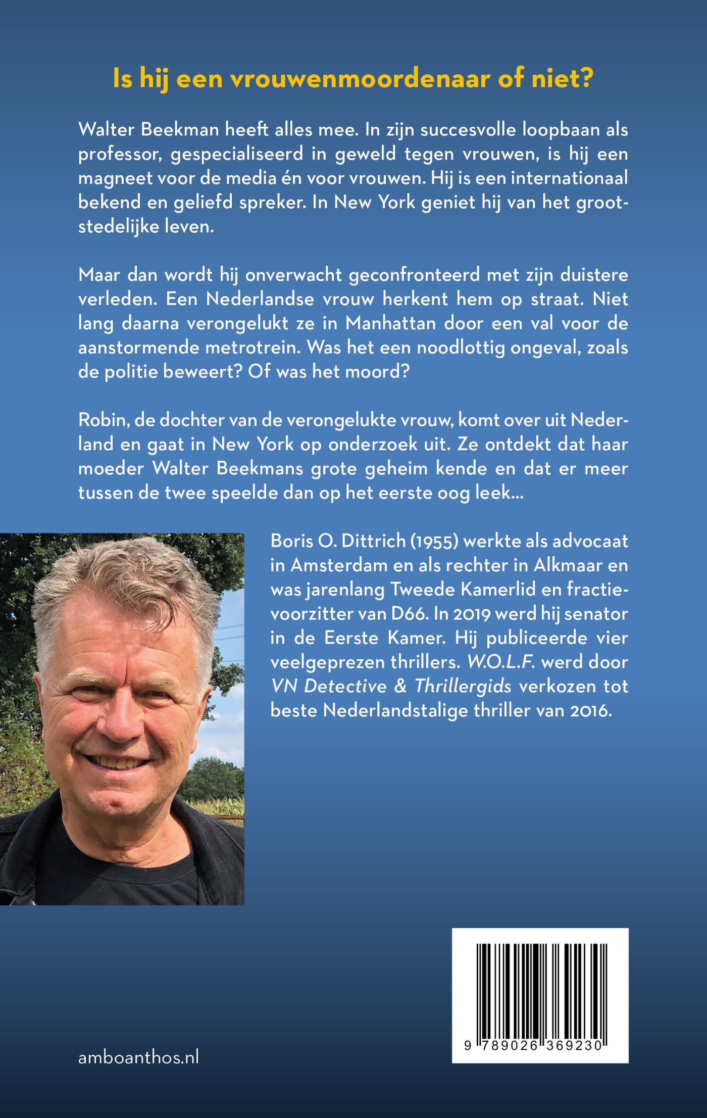 Walter Beekman heeft alles mee. In zijn succesvolle loopbaan als professor, gespecialiseerd in geweld tegen vrouwen, is hij een magneet voor de media én voor vrouwen. Hij is een internationaal bekend en geliefd spreker. In New York geniet hij van het grootstedelijke leven.