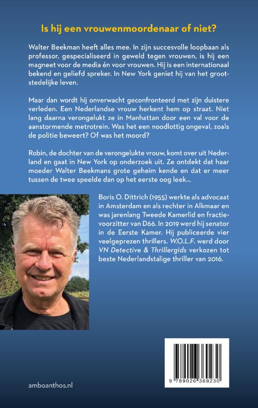 Walter Beekman heeft alles mee. In zijn succesvolle loopbaan als professor, gespecialiseerd in geweld tegen vrouwen, is hij een magneet voor de media én voor vrouwen. Hij is een internationaal bekend en geliefd spreker. In New York geniet hij van het grootstedelijke leven.