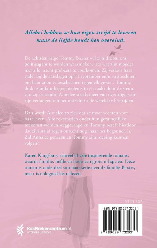 In Waar ik voor leef van Karen Kingsbury wil Tommy Baxter zijn droom om politieagent te worden najagen, maar zijn moeder wil daar niets van weten, omdat ze haar vader is verloren op 11 september. Terwijl Tommy in de familiegeschiedenis duikt, raakt hij ervan overtuigd dat hij het onrecht in de wereld wil bestrijden. Als zijn vriendin ziek wordt en moet vechten voor haar leven, beseft hij echter dat de strijd nog maar net begonnen is…