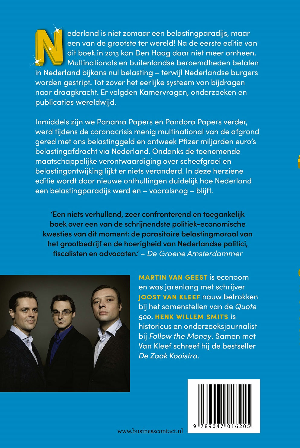 Journalisten Martin van Geest, Joost van Kleef en Henk Willem Smits schijnen in ‘Waarom niemand hier belasting betaalt, behalve jij’ opnieuw een licht op belastingparadijs Nederland.