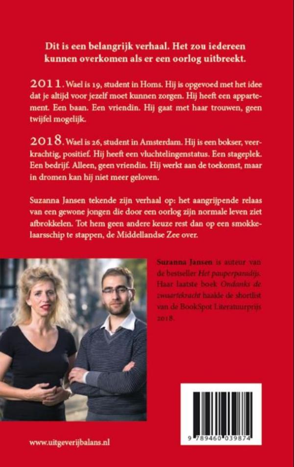Suzanna Jansen tekende in Wael zijn verhaal op: het aangrijpende relaas van een gewone jongen die door een oorlog zijn normale leven ziet afbrokkelen. Tot hem geen andere keuze rest dan op een smokkelaarsschip te stappen, de Middellandse Zee over.