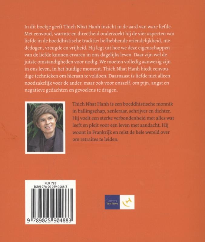 In dit boek geeft Thich Nhat Hanh inzicht in de aard van ware liefde. Met eenvoud, warmte en directheid onderzoekt hij de vier aspecten van liefde in de boeddhistische traditie: liefhebbende vriendelijkheid, mededogen, vreugde en vrijheid. Hij legt uit hoe we deze eigenschappen van de liefde kunnen ervaren in ons dagelijks leven. Daar zijn wel de juiste omstandigheden voor nodig. We moeten volledig aanwezig zijn in ons leven, in het huidige moment.