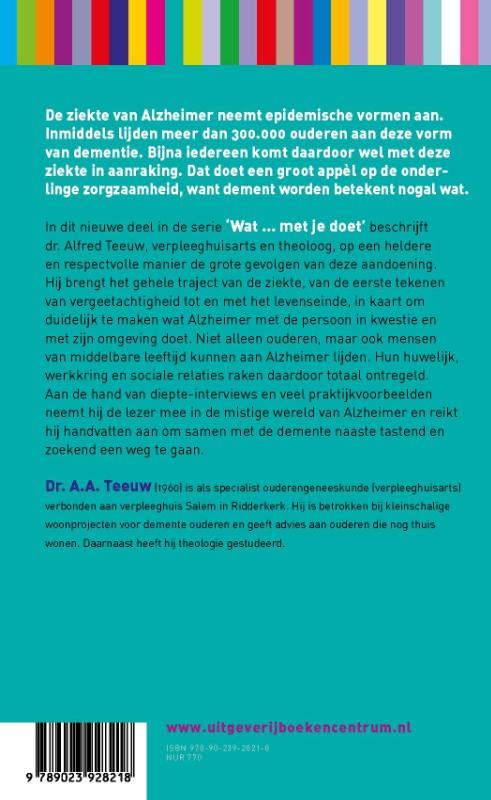 In dit nieuwe deel in de serie 'Wat ... met je doet' beschrijft dr. Alfred Teeuw, verpleeghuisarts en theoloog, op een heldere en respectvolle manier de grote gevolgen van deze aandoening.
