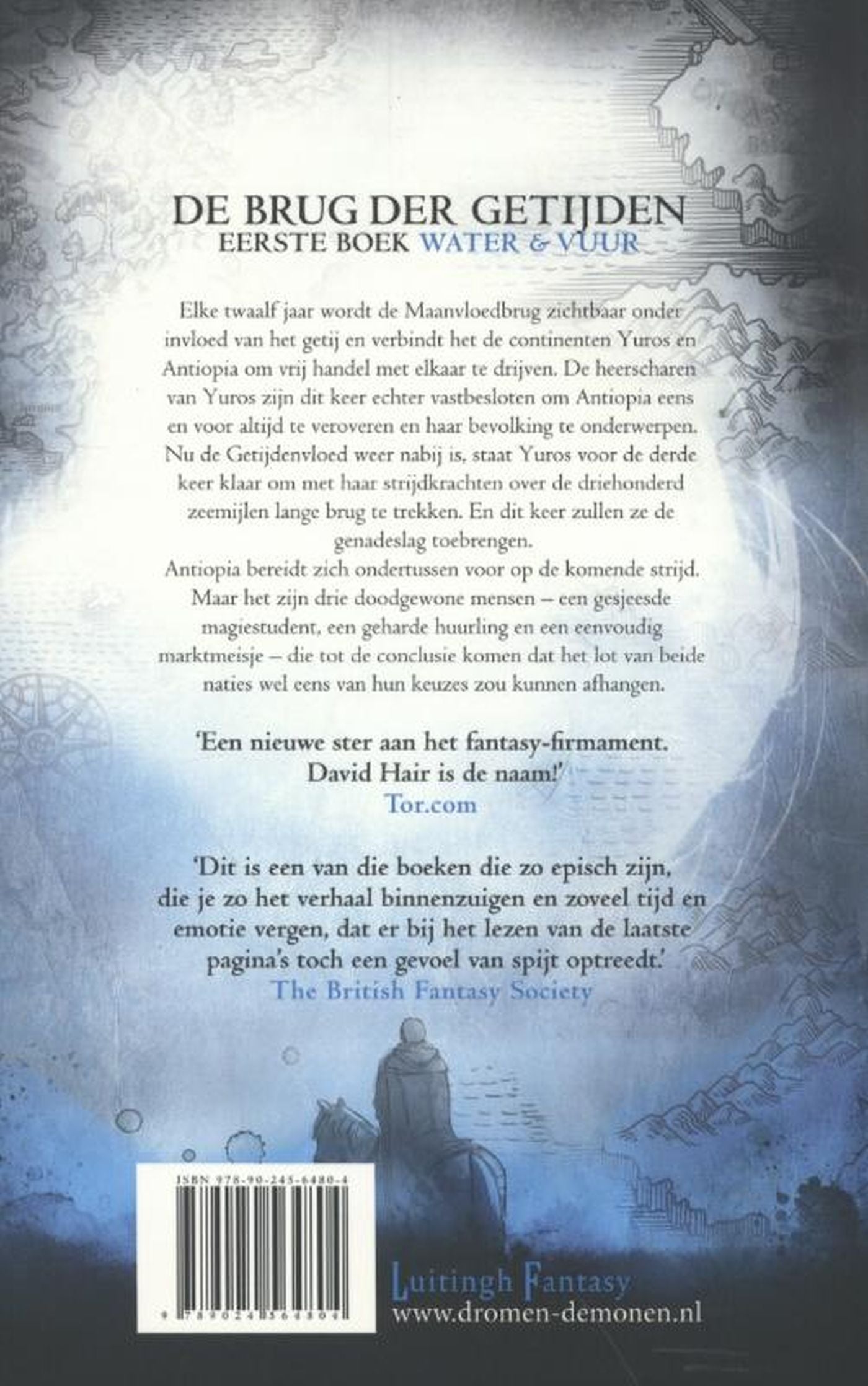 Elke twaalf jaar wordt de Maanvloedbrug zichtbaar onder invloed van het getij en verbindt het de continenten Yuros en Antiopia om vrij handel met elkaar te drijven. De heerscharen van Yuros zijn dit keer echter vastbesloten om Antiopia eens en voor altijd te veroveren en haar bevolking te onderwerpen. Nu de Getijdenvloed weer nabij is, staat Yuros voor de derde keer klaar om met haar strijdkrachten over de driehonderd zeemijlen lange brug te trekken. En dit keer zullen ze de genadeslag toebrengen. Antiopia bereidt zich ondertussen voor op de komende strijd. Maar het zijn drie doodgewone mensen een gesjeesde magiestudent, een geharde huurling en een eenvoudig marktmeisje - die tot de conclusie komen dat het lot van beide naties wel eens van hun keuzes zou kunnen afhangen.