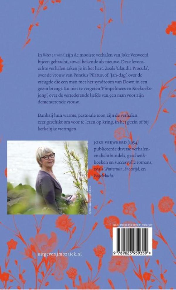 Weer en wind van Joke Verweerd is een ontroerende verhaalbundel met de mooiste verhalen uit Jokes schrijverscarrière én een aantal nieuwe verhalen.