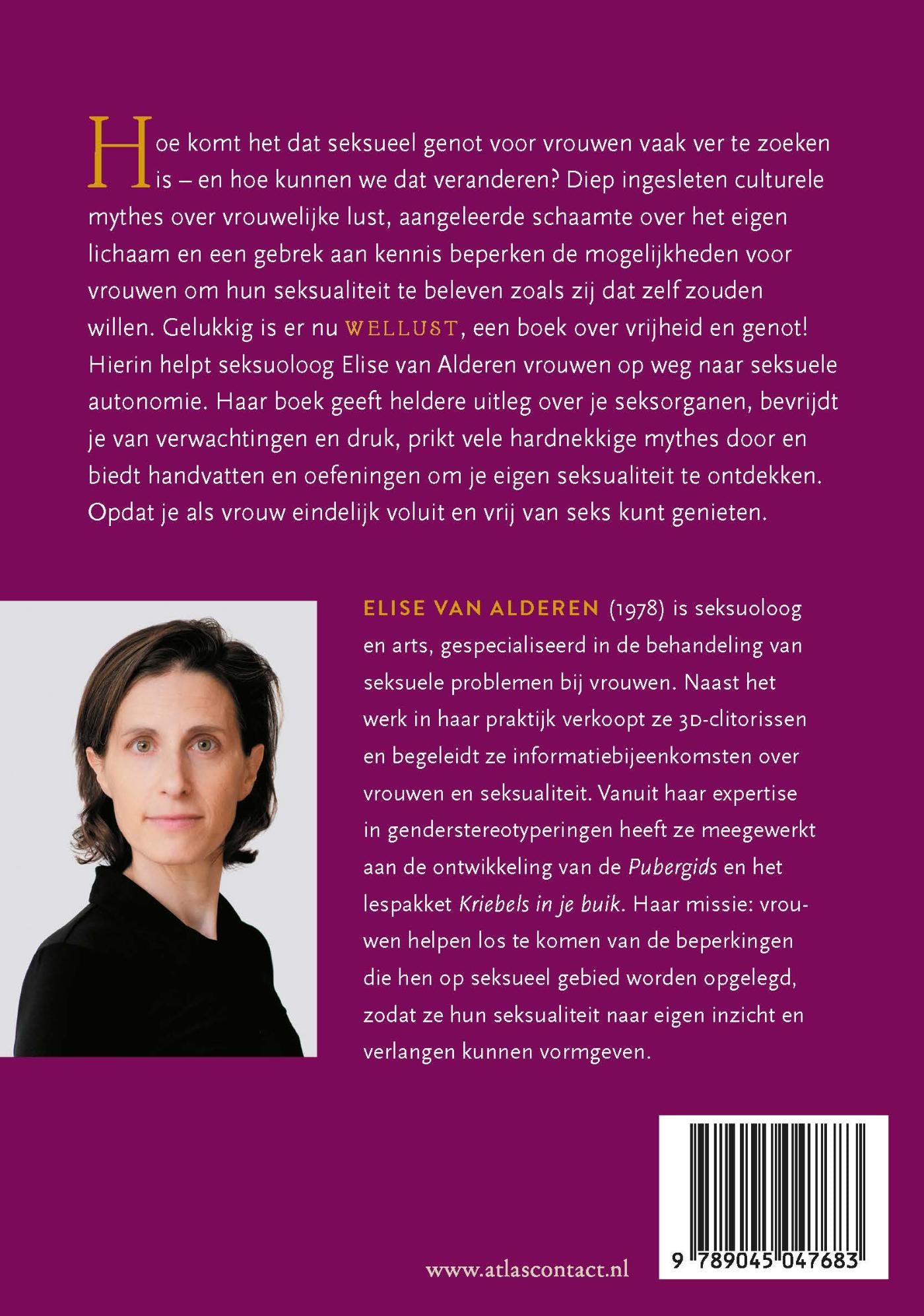 Hoe komt het dat seksueel genot voor vrouwen vaak ver te zoeken is – en hoe kunnen we dat veranderen? Diep ingesleten culturele mythes over vrouwelijke lust, aangeleerde schaamte over het eigen lichaam en een gebrek aan kennis beperken de mogelijkheden voor vrouwen om hun seksualiteit te beleven zoals zij dat zelf zouden willen. Gelukkig is er nu Wellust, een boek over vrijheid en genot! Hierin helpt seksuoloog Elise van Alderen vrouwen op weg naar seksuele autonomie. Haar boek geeft heldere uitleg over je seksorganen, bevrijdt je van verwachtingen en druk, prikt vele hardnekkige mythes door en biedt handvatten en oefeningen om je eigen seksualiteit te ontdekken. Opdat je als vrouw eindelijk voluit en vrij van seks kunt genieten.